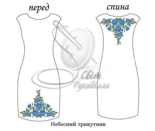 Заготовка під вишивку сукні. Заготовка НЕ ПОШИТА. Вона складається з прямокутних відрізків тканини, які після вишивки необхідно розкроїти та сшити по своєму фасону і розміру. Розміри відрізків на заготовку - 75х115 см - 2 шт (на перед і спинку) для габардину і 70х115 см -2 шт, для домотканого полотна. На темних тканинах друку немає! (До тканини додається водорозчинний флізелін з надрукованою схемою). Будь ласка, в коментарях до замовлення вказуйте бажаний колір тканини.