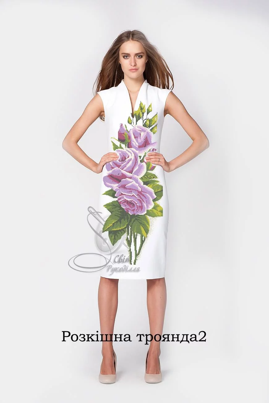 Заготовка під вишивку сукні. Заготовка НЕ ПОШИТА. Вона складається з прямокутних відрізків тканини, які після вишивки необхідно розкроїти та сшити по своєму фасону і розміру. Розміри відрізків на заготовку - 75х115 см - 2 шт (на перед і спинку) для габардину і 70х115 см -2 шт, для домотканого полотна. На темних тканинах друку немає! (До тканини додається водорозчинний флізелін з надрукованою схемою). Будь ласка, в коментарях до замовлення вказуйте бажаний колір тканини.