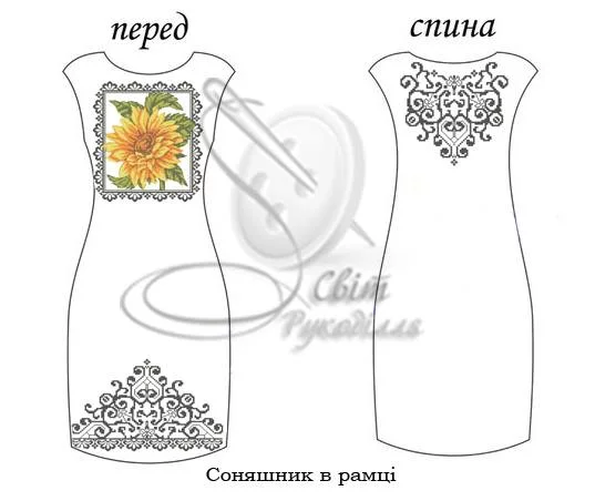 Заготовка під вишивку сукні. Заготовка НЕ ПОШИТА. Вона складається з прямокутних відрізків тканини, які після вишивки необхідно розкроїти та сшити по своєму фасону і розміру. Розміри відрізків на заготовку - 75х115 см - 2 шт (на перед і спинку) для габардину і 70х115 см -2 шт, для домотканого полотна. На темних тканинах друку немає! (До тканини додається водорозчинний флізелін з надрукованою схемою). Будь ласка, в коментарях до замовлення вказуйте бажаний колір тканини.