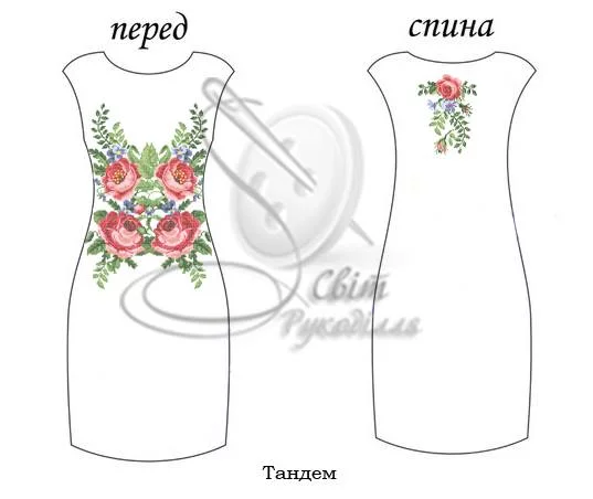 Заготовка під вишивку сукні. Заготовка НЕ ПОШИТА. Вона складається з прямокутних відрізків тканини, які після вишивки необхідно розкроїти та сшити по своєму фасону і розміру. Розміри відрізків на заготовку - 75х115 см - 2 шт (на перед і спинку) для габардину і 70х115 см -2 шт, для домотканого полотна. На темних тканинах друку немає! (До тканини додається водорозчинний флізелін з надрукованою схемою). Будь ласка, в коментарях до замовлення вказуйте бажаний колір тканини.