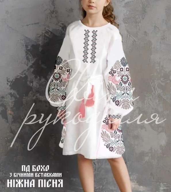 Заготовка під вишивку сукні. Заготовка НЕ ПОШИТА. Вона складається з прямокутних відрізків тканини, які після вишивки необхідно розкроїти та сшити по своєму фасону і розміру. Розміри відрізків на заготовку - 60х100 см -2 шт (перед і спинка), рукава 50х60 см-2 шт, бічні вставки 50х60 см -2 шт. Для домтканого полотна параметри відрізків інші: 60х90 см - 2 відрізки на перед і спинку; рукава: 45х60 см -2 шт; бічні вставки - 45х60 см - 2 шт. На темних тканинах друку немає! (До тканини додається водорозчинний флізелін з надрукованою схемою). Будь ласка, в коментарях до замовлення вказуйте бажаний колір тканини.
