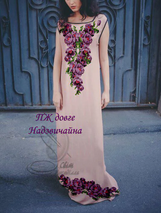 Заготовка під вишивку сукні. Заготовка НЕ ПОШИТА. Вона складається з прямокутних відрізків тканини, які після вишивки необхідно розкроїти та сшити по своєму фасону і розміру. Розміри відрізків на заготовку - 75х150 см - 2 шт (на перед і спинку) для габардину і 70х115 см -2 шт, для домотканого полотна. На темних тканинах друку немає! (До тканини додається водорозчинний флізелін з надрукованою схемою). Будь ласка, в коментарях до замовлення вказуйте бажаний колір тканини.