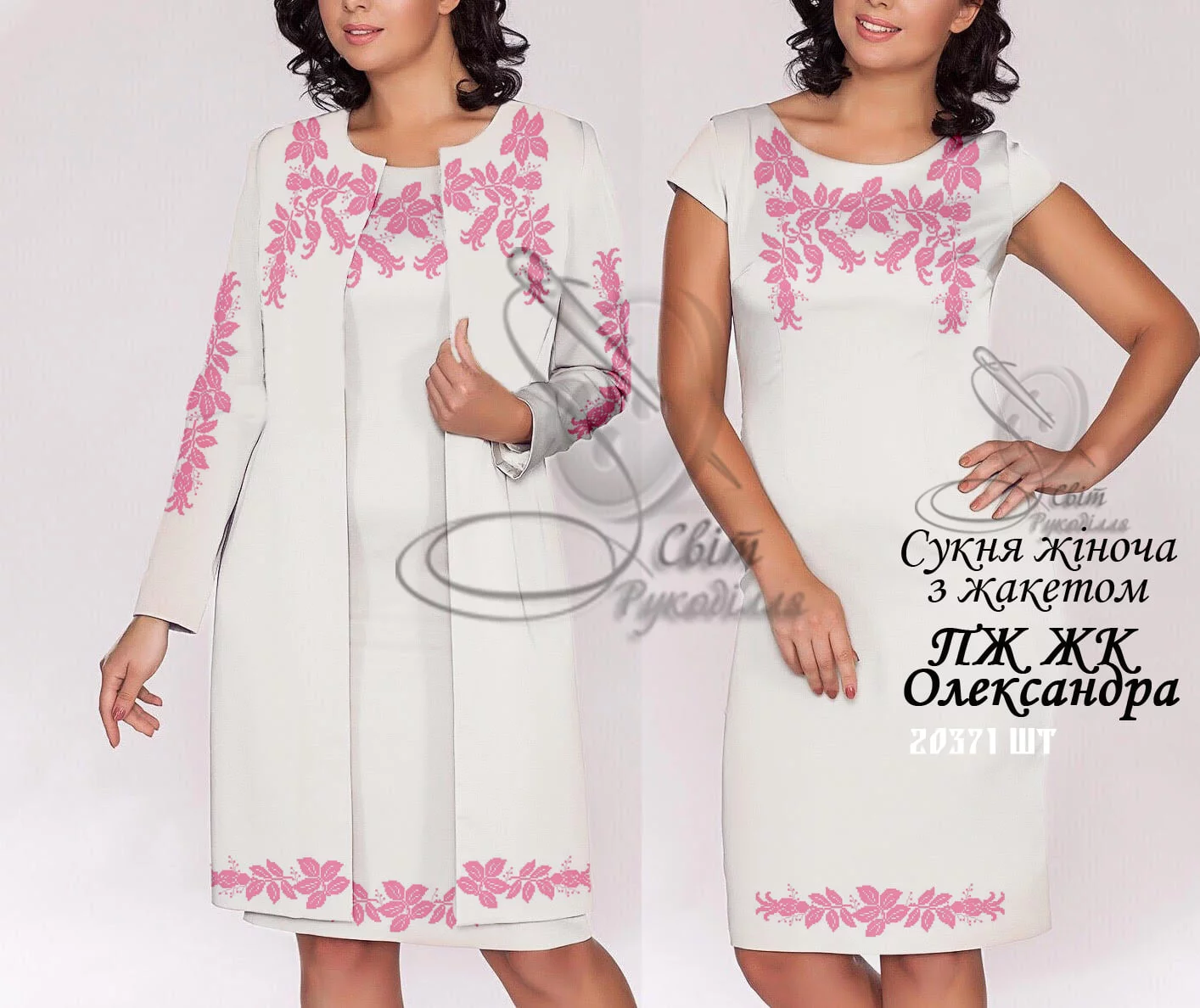 Заготовка під вишивку сукні з жакетом. Заготовка НЕ ПОШИТА і не розкроєна. Після вишивки ва потрібно буде самостійно розкроїти і сшити виріб за своїм розміром та фасоном. Розмір відрізків на заготовку: сукня - 75х115 см - 2 відрізки на перед і спинку (параметри для домотканого полотна 70х115 см), відрізки тканини на жакет 75х115 см на перед і спинку (домоткане 70х115 см), рукава 60х75 см - 2 відрізки (домоткане 60х70 см). На темних тканинах друку немає! (До тканини додається водорозчинний флізелін з надрукованою схемою). Будь ласка, в коментарях до замовлення вказуйте бажаний колір тканини.