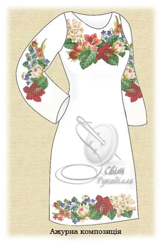 Заготовка під вишивку сукні. Заготовка НЕ ПОШИТА. Вона складається з прямокутних відрізків тканини, які після вишивки необхідно розкроїти та сшити по своєму фасону і розміру. Розміри відрізків на заготовку - 75х115 см - 2 шт (на перед і спинку) для габардину і 70х115 см -2 шт, для домотканого полотна. Відрізки тканини на рукава - 60х75 см - 2 шт, для габардину і 60х70 см - 2 шт, для домотканого полотна. На темних тканинах друку немає! (До тканини додається водорозчинний флізелін з надрукованою схемою). Будь ласка, в коментарях до замовлення вказуйте бажаний колір тканини.