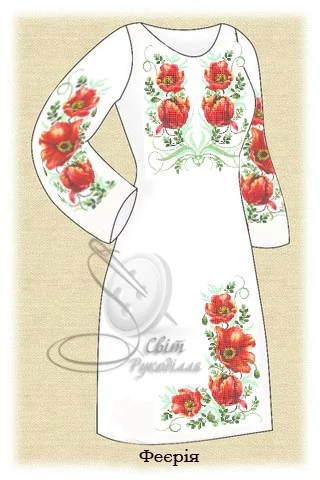 Заготовка під вишивку сукні. Заготовка НЕ ПОШИТА. Вона складається з прямокутних відрізків тканини, які після вишивки необхідно розкроїти та сшити по своєму фасону і розміру. Розміри відрізків на заготовку - 75х115 см - 2 шт (на перед і спинку) для габардину і 70х115 см -2 шт, для домотканого полотна. Відрізки тканини на рукава - 60х75 см - 2 шт, для габардину і 60х70 см - 2 шт, для домотканого полотна. На темних тканинах друку немає! (До тканини додається водорозчинний флізелін з надрукованою схемою). Будь ласка, в коментарях до замовлення вказуйте бажаний колір тканини.