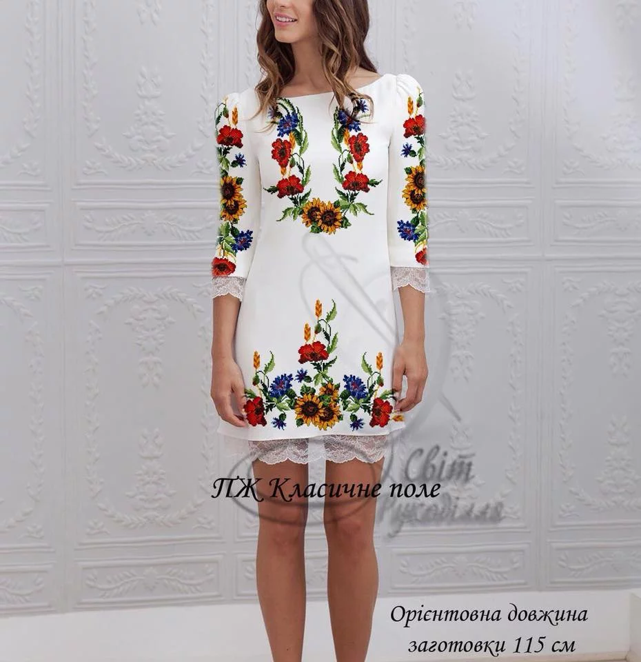Заготовка під вишивку сукні. Заготовка НЕ ПОШИТА. Вона складається з прямокутних відрізків тканини, які після вишивки необхідно розкроїти та сшити по своєму фасону і розміру. Розміри відрізків на заготовку - 75х115 см - 2 шт (на перед і спинку) для габардину і 70х115 см -2 шт, для домотканого полотна. Відрізки тканини на рукава - 60х75 см - 2 шт, для габардину і 60х70 см - 2 шт, для домотканого полотна. На темних тканинах друку немає! (До тканини додається водорозчинний флізелін з надрукованою схемою). Будь ласка, в коментарях до замовлення вказуйте бажаний колір тканини.