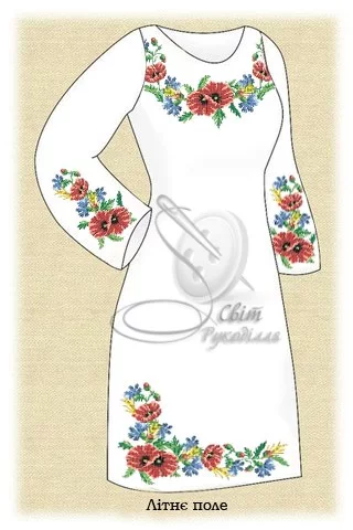 Заготовка під вишивку сукні. Заготовка НЕ ПОШИТА. Вона складається з прямокутних відрізків тканини, які після вишивки необхідно розкроїти та сшити по своєму фасону і розміру. Розміри відрізків на заготовку - 75х115 см - 2 шт (на перед і спинку) для габардину і 70х115 см -2 шт, для домотканого полотна. Відрізки тканини на рукава - 60х75 см - 2 шт, для габардину і 60х70 см - 2 шт, для домотканого полотна. На темних тканинах друку немає! (До тканини додається водорозчинний флізелін з надрукованою схемою). Будь ласка, в коментарях до замовлення вказуйте бажаний колір тканини.