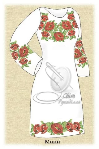 Заготовка під вишивку сукні. Заготовка НЕ ПОШИТА. Вона складається з прямокутних відрізків тканини, які після вишивки необхідно розкроїти та сшити по своєму фасону і розміру. Розміри відрізків на заготовку - 75х115 см - 2 шт (на перед і спинку) для габардину і 70х115 см -2 шт, для домотканого полотна. Відрізки тканини на рукава - 60х75 см - 2 шт, для габардину і 60х70 см - 2 шт, для домотканого полотна. На темних тканинах друку немає! (До тканини додається водорозчинний флізелін з надрукованою схемою). Будь ласка, в коментарях до замовлення вказуйте бажаний колір тканини.
