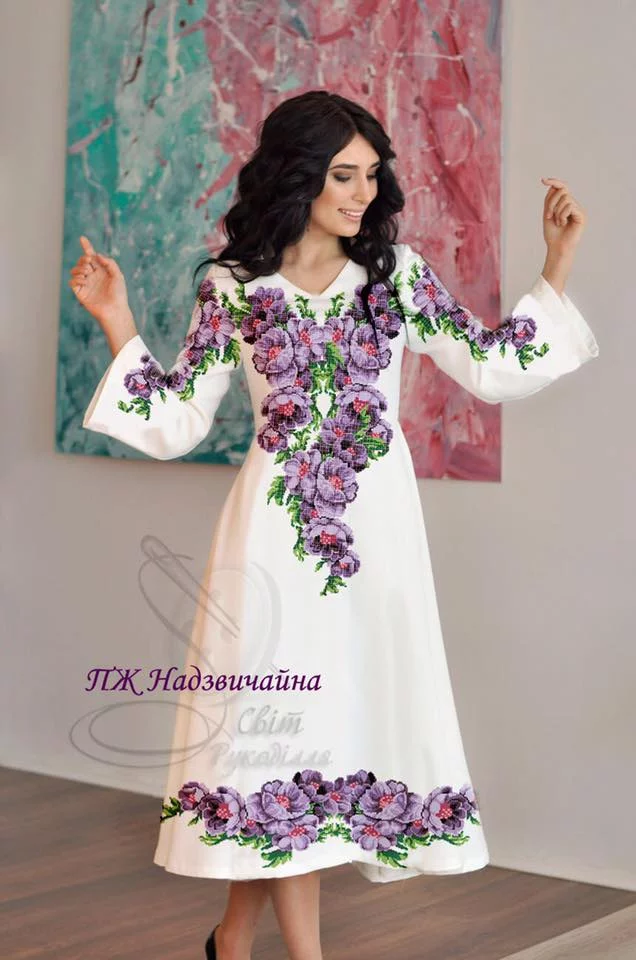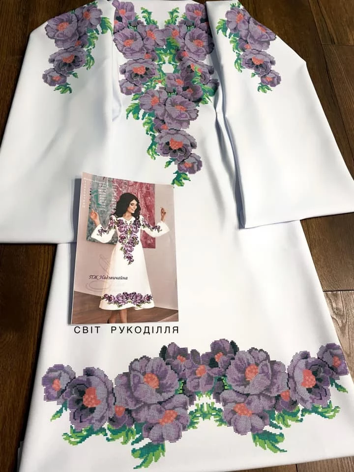 Заготовка під вишивку сукні. Заготовка НЕ ПОШИТА. Вона складається з прямокутних відрізків тканини, які після вишивки необхідно розкроїти та сшити по своєму фасону і розміру. Розміри відрізків на заготовку - 75х115 см - 2 шт (на перед і спинку) для габардину і 70х115 см -2 шт, для домотканого полотна. Відрізки тканини на рукава - 60х75 см - 2 шт, для габардину і 60х70 см - 2 шт, для домотканого полотна. На темних тканинах друку немає! (До тканини додається водорозчинний флізелін з надрукованою схемою). Будь ласка, в коментарях до замовлення вказуйте бажаний колір тканини.