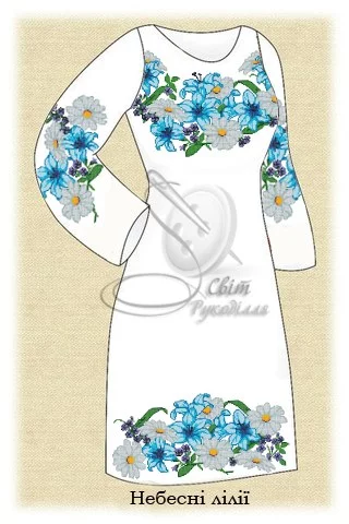 Заготовка під вишивку сукні. Заготовка НЕ ПОШИТА. Вона складається з прямокутних відрізків тканини, які після вишивки необхідно розкроїти та сшити по своєму фасону і розміру. Розміри відрізків на заготовку - 75х115 см - 2 шт (на перед і спинку) для габардину і 70х115 см -2 шт, для домотканого полотна. Відрізки тканини на рукава - 60х75 см - 2 шт, для габардину і 60х70 см - 2 шт, для домотканого полотна. На темних тканинах друку немає! (До тканини додається водорозчинний флізелін з надрукованою схемою). Будь ласка, в коментарях до замовлення вказуйте бажаний колір тканини.