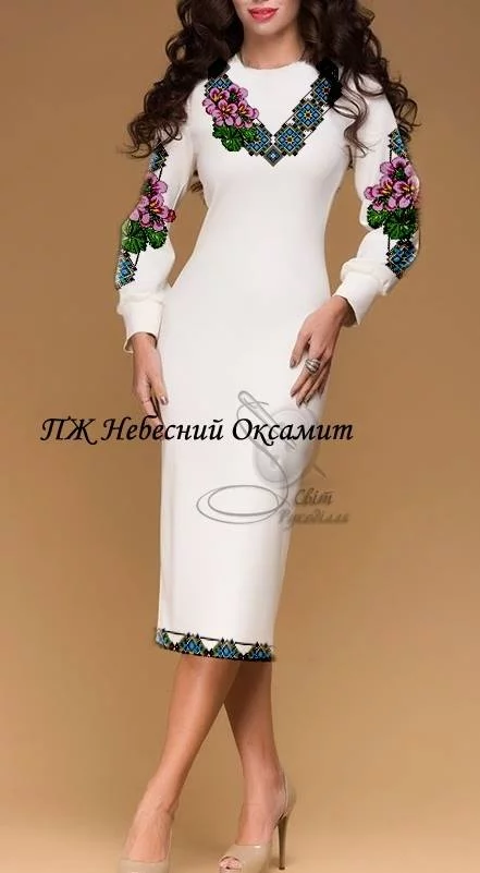 Заготовка під вишивку сукні. Заготовка НЕ ПОШИТА. Вона складається з прямокутних відрізків тканини, які після вишивки необхідно розкроїти та сшити по своєму фасону і розміру. Розміри відрізків на заготовку - 75х115 см - 2 шт (на перед і спинку) для габардину і 70х115 см -2 шт, для домотканого полотна. Відрізки тканини на рукава - 60х75 см - 2 шт, для габардину і 60х70 см - 2 шт, для домотканого полотна. На темних тканинах друку немає! (До тканини додається водорозчинний флізелін з надрукованою схемою). Будь ласка, в коментарях до замовлення вказуйте бажаний колір тканини.