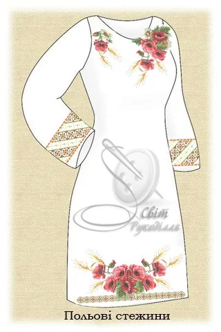 Заготовка під вишивку сукні. Заготовка НЕ ПОШИТА. Вона складається з прямокутних відрізків тканини, які після вишивки необхідно розкроїти та сшити по своєму фасону і розміру. Розміри відрізків на заготовку - 75х115 см - 2 шт (на перед і спинку) для габардину і 70х115 см -2 шт, для домотканого полотна. Відрізки тканини на рукава - 60х75 см - 2 шт, для габардину і 60х70 см - 2 шт, для домотканого полотна. На темних тканинах друку немає! (До тканини додається водорозчинний флізелін з надрукованою схемою). Будь ласка, в коментарях до замовлення вказуйте бажаний колір тканини.