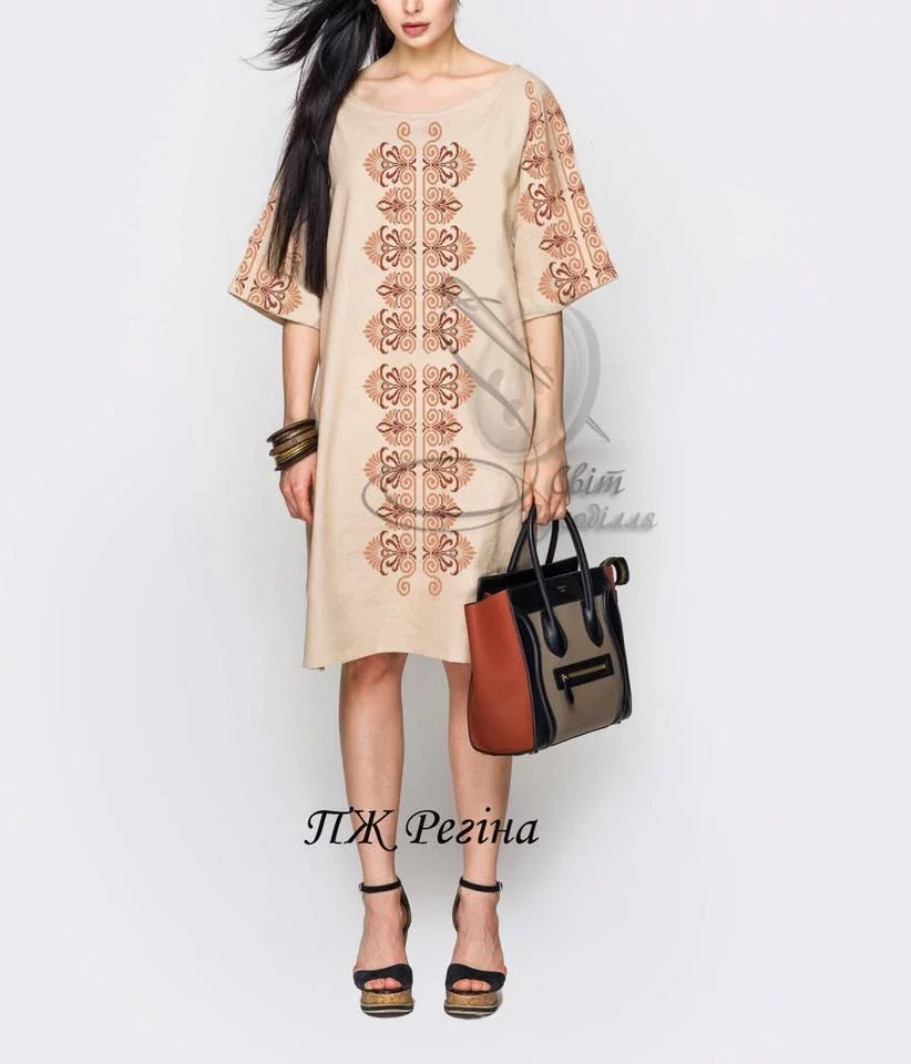 Заготовка під вишивку сукні. Заготовка НЕ ПОШИТА. Вона складається з прямокутних відрізків тканини, які після вишивки необхідно розкроїти та сшити по своєму фасону і розміру. Розміри відрізків на заготовку - 75х115 см - 2 шт (на перед і спинку) для габардину і 70х115 см -2 шт, для домотканого полотна. Відрізки тканини на рукава - 60х75 см - 2 шт, для габардину і 60х70 см - 2 шт, для домотканого полотна. На темних тканинах друку немає! (До тканини додається водорозчинний флізелін з надрукованою схемою). Будь ласка, в коментарях до замовлення вказуйте бажаний колір тканини.