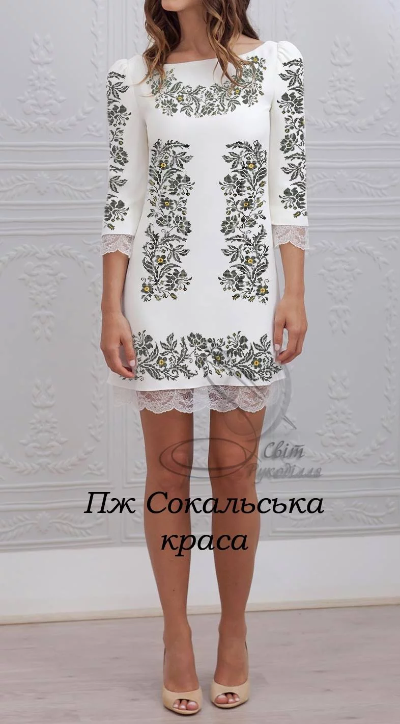 Заготовка під вишивку сукні. Заготовка НЕ ПОШИТА. Вона складається з прямокутних відрізків тканини, які після вишивки необхідно розкроїти та сшити по своєму фасону і розміру. Розміри відрізків на заготовку - 75х115 см - 2 шт (на перед і спинку) для габардину і 70х115 см -2 шт, для домотканого полотна. Відрізки тканини на рукава - 60х75 см - 2 шт, для габардину і 60х70 см - 2 шт, для домотканого полотна. На темних тканинах друку немає! (До тканини додається водорозчинний флізелін з надрукованою схемою). Будь ласка, в коментарях до замовлення вказуйте бажаний колір тканини. УВАГА! Мереживо в набір не входить, представлене фото демонструє можливий варіант пошиття.