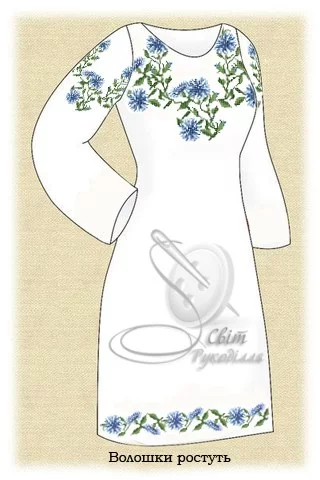 Заготовка під вишивку сукні. Заготовка НЕ ПОШИТА. Вона складається з прямокутних відрізків тканини, які після вишивки необхідно розкроїти та сшити по своєму фасону і розміру. Розміри відрізків на заготовку - 75х115 см - 2 шт (на перед і спинку) для габардину і 70х115 см -2 шт, для домотканого полотна. Відрізки тканини на рукава - 60х75 см - 2 шт, для габардину і 60х70 см - 2 шт, для домотканого полотна. На темних тканинах друку немає! (До тканини додається водорозчинний флізелін з надрукованою схемою). Будь ласка, в коментарях до замовлення вказуйте бажаний колір тканини.