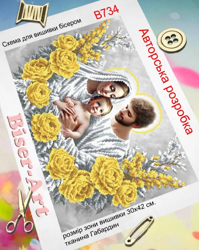 Схема під вишивку бісером. Друк на габардині. Розмір 30х42 см. До схеми додається список рекомендованих кольорів бісеру.