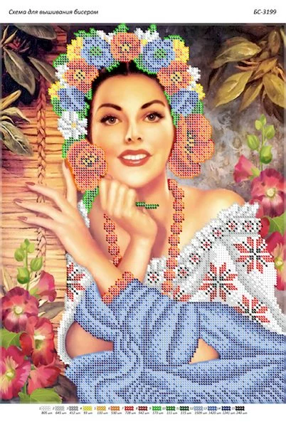Схема під вишивку бісером. Друк на габардині. Формат А3 (27х36 см). Схема ПІД ЗАМОВЛЕННЯ у виробника (чекати до 10 робочих днів). За бажанням клієнта комплектуємо бісером.