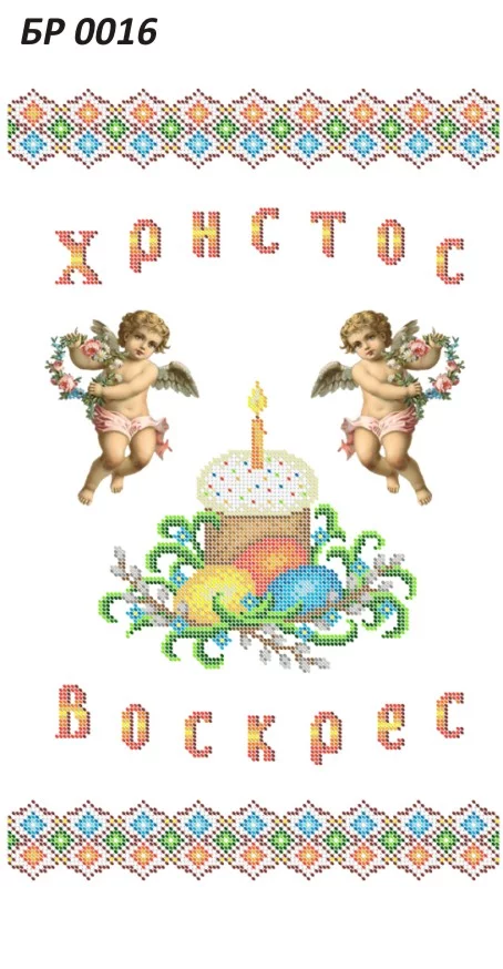 Заготовка під вишивку бісером великоднього рушничка. Друк на габардині. Розмір 34 х 59 см. Схема ПІД ЗАМОВЛЕННЯ у виробника (чекати до 10 робочих днів). За бажанням клієнта комплектуємо бісером.