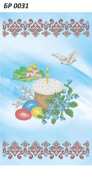 Заготовка під вишивку бісером великоднього рушничка. Друк на габардині. Розмір 34 х 59 см. Схема ПІД ЗАМОВЛЕННЯ у виробника (чекати до 10 робочих днів). За бажанням клієнта комплектуємо бісером.