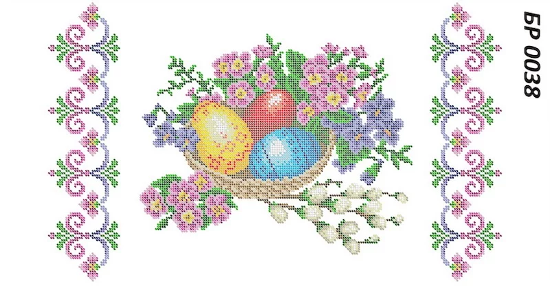 Заготовка під вишивку бісером великоднього рушничка. Друк на габардині. Розмір 34 х 59 см. Схема ПІД ЗАМОВЛЕННЯ у виробника (чекати до 10 робочих днів). За бажанням клієнта комплектуємо бісером.