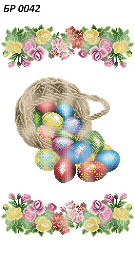 Заготовка під вишивку бісером великоднього рушничка. Друк на габардині. Розмір 34 х 59 см. Схема ПІД ЗАМОВЛЕННЯ у виробника (чекати до 10 робочих днів). За бажанням клієнта комплектуємо бісером.