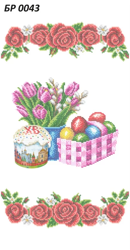 Заготовка під вишивку бісером великоднього рушничка. Друк на габардині. Розмір 34 х 59 см. Схема ПІД ЗАМОВЛЕННЯ у виробника (чекати до 10 робочих днів). За бажанням клієнта комплектуємо бісером.