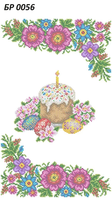 Заготовка під вишивку бісером великоднього рушничка. Друк на габардині. Розмір 34 х 59 см. Схема ПІД ЗАМОВЛЕННЯ у виробника (чекати до 10 робочих днів). За бажанням клієнта комплектуємо бісером.