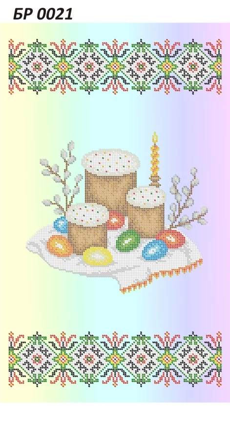 Заготовка під вишивку бісером великоднього рушничка. Друк на габардині. Розмір 34 х 59 см. Схема ПІД ЗАМОВЛЕННЯ у виробника (чекати до 10 робочих днів). За бажанням клієнта комплектуємо бісером.