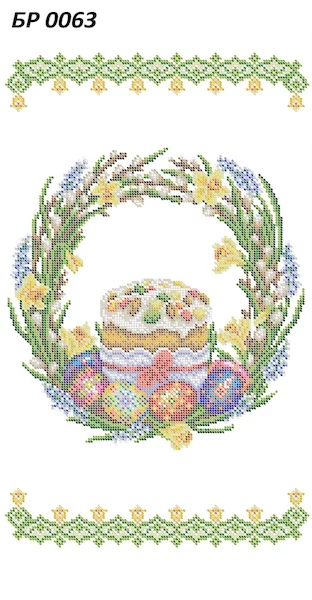 Заготовка під вишивку бісером великоднього рушничка. Друк на габардині. Розмір 34 х 59 см. Схема ПІД ЗАМОВЛЕННЯ у виробника (чекати до 10 робочих днів). За бажанням клієнта комплектуємо бісером.