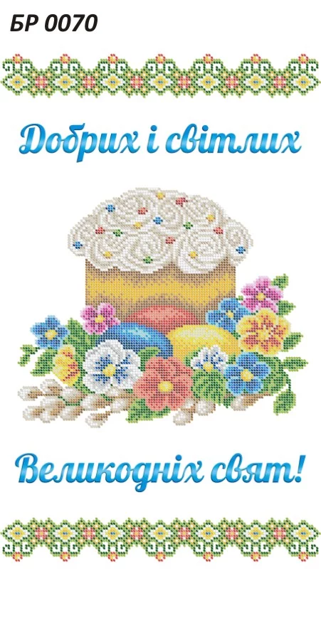 Заготовка під вишивку бісером великоднього рушничка. Друк на габардині. Розмір 34 х 59 см. Схема ПІД ЗАМОВЛЕННЯ у виробника (чекати до 10 робочих днів). За бажанням клієнта комплектуємо бісером.