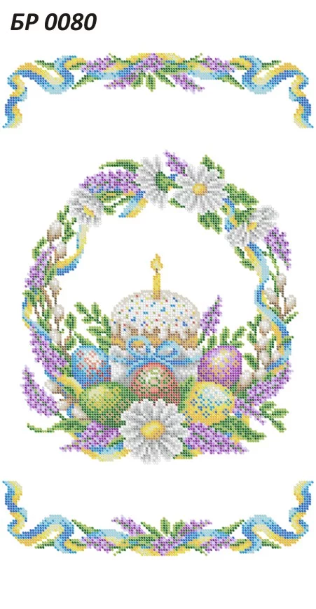 Заготовка під вишивку бісером великоднього рушничка. Друк на габардині. Розмір 34 х 59 см. Схема ПІД ЗАМОВЛЕННЯ у виробника (чекати до 10 робочих днів). За бажанням клієнта комплектуємо бісером.