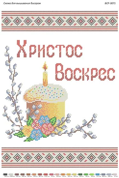 Заготовка під вишивку бісером великоднього рушничка. Друк на габардині. Розмір 27х36 см. Схема ПІД ЗАМОВЛЕННЯ у виробника (чекати до 10 робочих днів). За бажанням клієнта комплектуємо бісером.