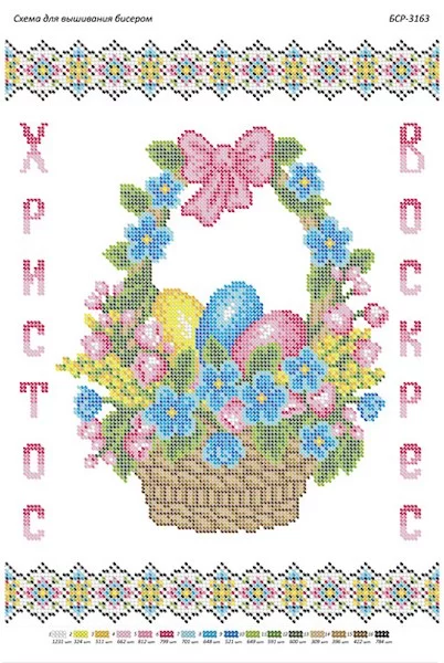 Заготовка під вишивку бісером великоднього рушничка. Друк на габардині. Розмір 27х36 см. Схема ПІД ЗАМОВЛЕННЯ у виробника (чекати до 10 робочих днів). За бажанням клієнта комплектуємо бісером.