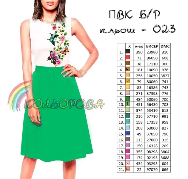 - титулка-ключ з рекомендованими кольорами бісеру Preciosa або муліне DMC та їх кількістю.